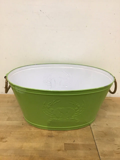10.5"Hx24"Lx18"W Green Metal Crab Motif Beverage Tub