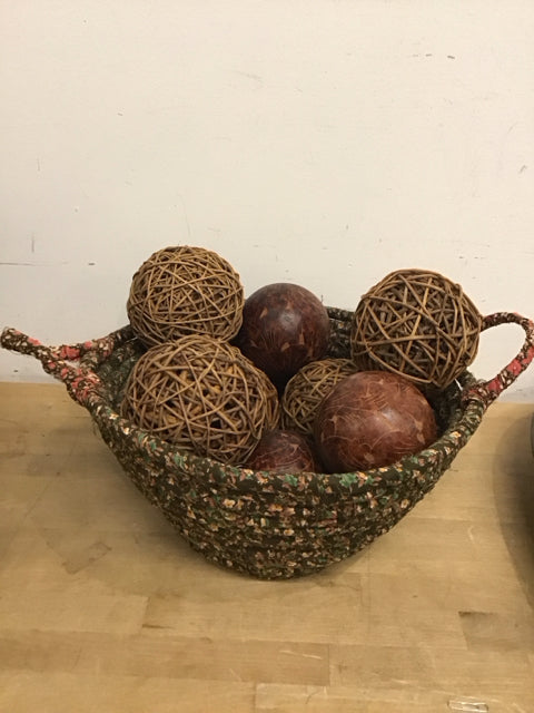 16"Anthropology Floral Woven Basket W/Decorative Balls