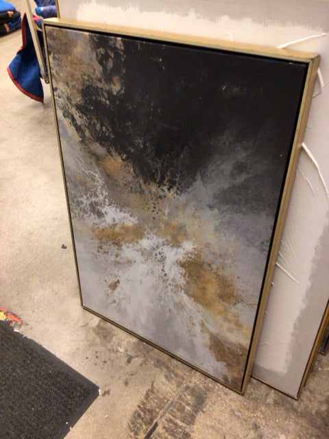 25" X 37" Blue & Gold Abstract Framed Print On Canvas