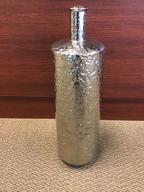 27" Dimpled Metallic Silver Ceramic Narrow Neck