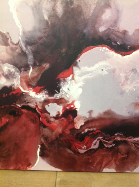 36" X 24" Red & Grey Abstract Canvas
