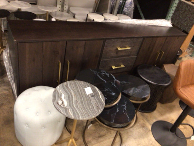 4 door/3 Drawer Drk Wood Buffet Gold Handles
