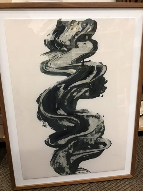 41"x30" Green Blue & White Ribbon Abstract Art Print