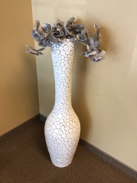 45" Wnite Piered Floor Vase W/Silver Embellished Florals