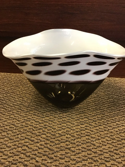 8.25"Hx13"W Robert Marshall Signed Brown/White Spotted Bowl