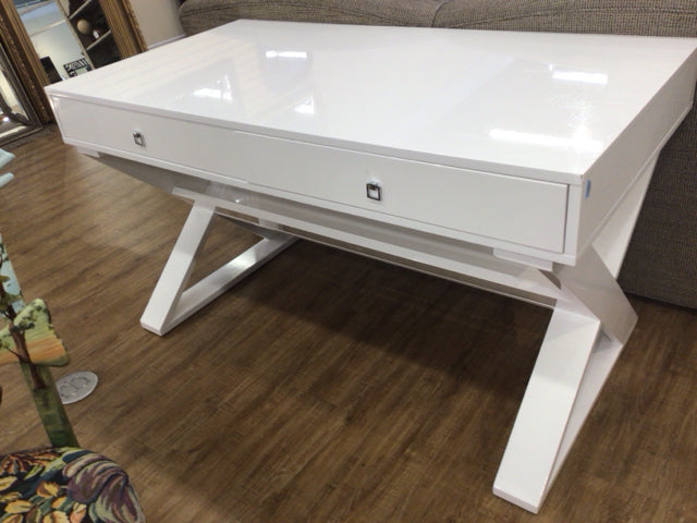 AS-IS White Lacqured Two Darwer Desk (Knicks)