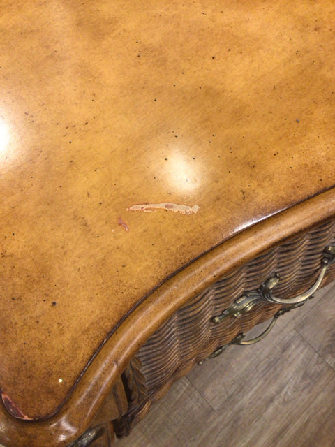 AS-IS Wood & Rattan Woven Three Drawer Bombay Chest(Mark On Top)