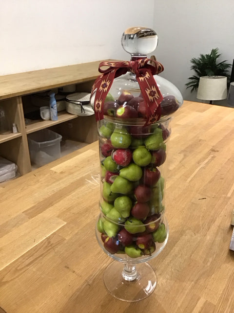 22" Glass Apothecary Lidded Jar W/Decorative Apples & Pears