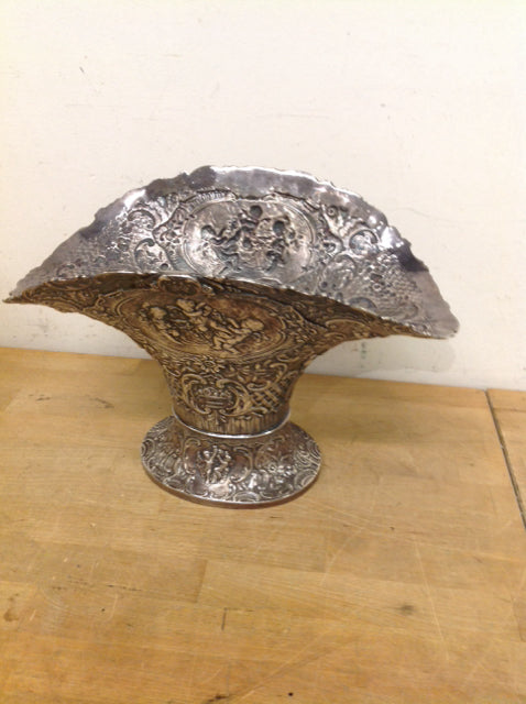 Silverplate- 14" Hammered Cherubs Vase